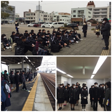 今日は修学旅行に向けて2年生が名古屋市内の社会見学を行なっています。修学旅行と同様にJR四日市駅に集合し関西線で名古屋に着きました。いよいよ班別分散学習に出発です。