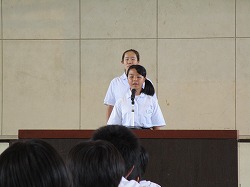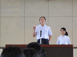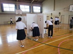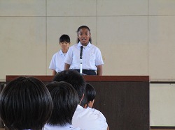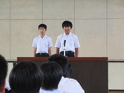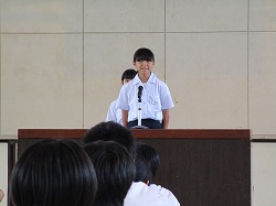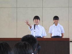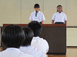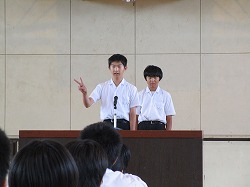 6限目に新生徒会の立会演説会がありました。2年生から会長1名、副会長1名、総務2名の計4名の立候補がありました。全員緊張しながらも立候補をした思いを全校生徒に届けることができました。また、それぞれの責任者も立派にスピーチができました。