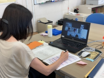 続いては、事務の水野さんが、zoomにて会議中。
