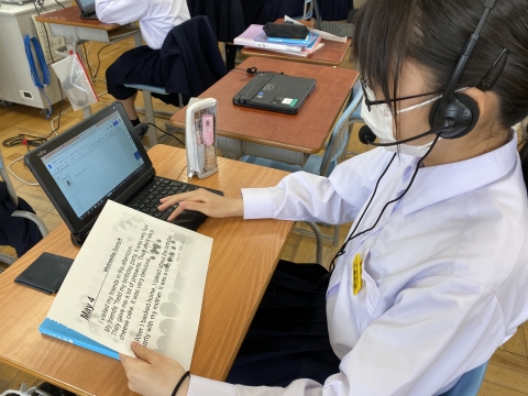 2年生の英語の授業では、Googleドキュメントの音声入力機能を使って発音をチェック中。今週末の土曜授業で発表するための準備です。思い出に残っている最近の1日の日記を英語で紹介します。ぜひ、見に来てくださいね!