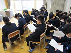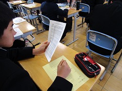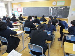 2年生は,社会見学も終わって少しずつ受験意識を高めるために,県立前期選抜募集をみていました。そのあと社会見学のパワーポイントづくりを行いました。