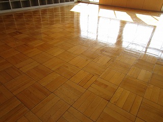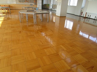 土曜日に職員室や校長室のワックスがけの様子をお伝えしましたが、今朝、校舎教室棟を見に行ってみると・・
