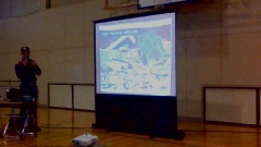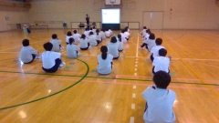 1時間目は、防災の話です。予想される南海トラフ大地震、その備えの重要性とどのように備えるるかということを中心にして、さまざまなケースを紹介してもらいながらお話をいただきました。皆さんの家ではどうでしょうか、家族防災会議を開いて家族の中で防災計画を立てたりしているでしょうか。今回の防災教室が良い機会だと思います。今一度防災についてお家でみんなでお話をしみていかがでしょうか。