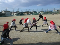 園長先生からの紹介の後は、体操、そして短距離ダッシュ!