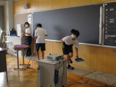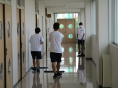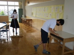 終業式前に1学期末の大掃除をおこないました。普段の10分間の掃除の時間では落としきれないよごれを、50分ほどかけて、きれいにしました。みんな、一生懸命、取り組んでいましたね。