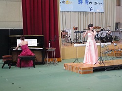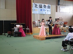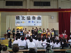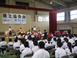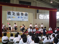 橋北中の生徒が耳傾ける 橋北交流会館で学び舎音楽会