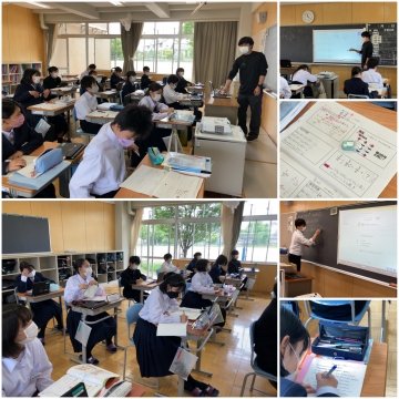 3年生の社会は、吉田先生と山際先生のT-T体制。橋北中ならではの贅沢な授業です。