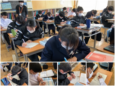 1年生の数学は、おなじみの自由進度学習。静寂の中、思い思いの学習を重ねます。