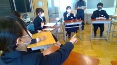 学級委員、学級書記、専門委員、教科係、掃除分担などなど、4月には決めることがたくさんあります。3年生でも前期の体制が着々と決まっています。その後は、個人目標、クラス目標、修学旅行スローガンと、大事な目標を決めていきます。クラス一丸となって、目標をめざして活動していきましょう!!