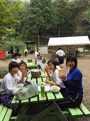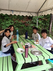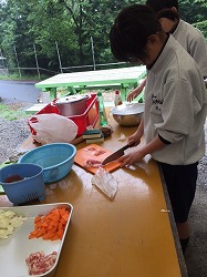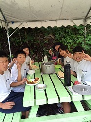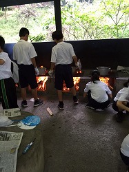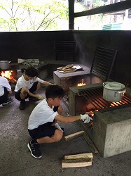 雨もやみ、無事に野外炊事が出来ました。各班の人数が少ない分、一人一人の役割が大きくなります。協力して、とても美味しい昼食となりました。
