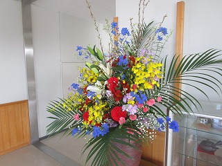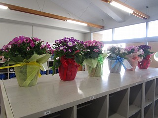 卒業式で式場を華やかにしてくれた花々や掲示物が、現在生徒玄関や展示物コーナーに