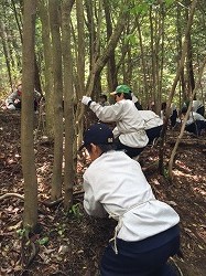 月曜日にお話をいただいた桐生先生に来ていただき、里山保全活動をしました。50年間手入れしていない里山に入り、低木や亜高木を伐採し、薪を作りました。里山の地面まで光が届くようにすることで、生態系を守ることができます。昔の人々の生活に触れ、現在の生活を見直すきっかけにしてほしいと思います。