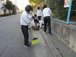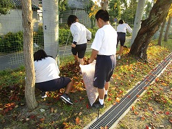 本日、落ち葉拾いをおこないました。グラウンドの周りの木の下や、道路などたくさんの落ち葉を集めることができました。清掃後の道路はとてもきれいになっていました。