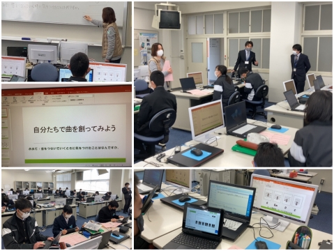 間野先生がPCを活用した作曲の授業をするという話を聞き、
