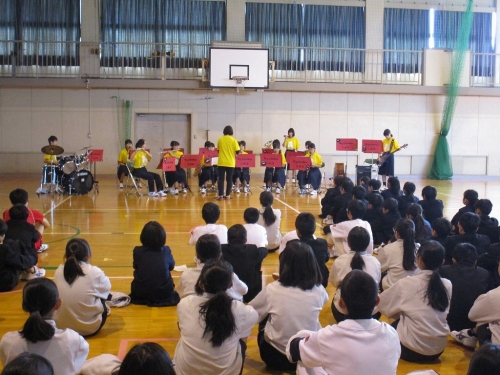 橋北中の生徒が耳傾ける 橋北交流会館で学び舎音楽会