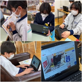 今回の授業では、そんな「食」について、自分の興味を持ったテーマを深堀し、「みんなに知らせるべきこと」をまとめてレポートを作成しています。インターネットからの情報収集でも、Webサイト、データの画像検索、YouTubeでのニュース検索など多岐にわたり、図書室で書籍から調べる人もいました。休み時間以外は無言で作成に熱中する姿に、関心の高さがうかがえました。どんな深堀をするのか楽しみです。