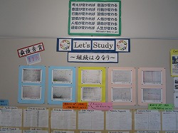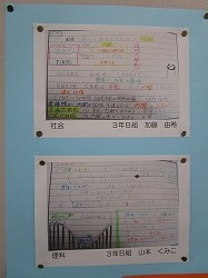 今、昇降口通路の掲示板には、Let's studyの11月の最優秀賞が掲示されています。そのページを見ると毎日の家庭学習の様子がよくわかります。この積み重ねが基礎学力の定着につながっていきます。生徒たちの家庭学習の習慣が身に付くように、教師も毎日Let's studyを点検しています。ご来校の際はぜひご覧になってください。