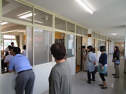 本日、2日目となる授業公開週間に民生委員・児童委員と主任児童員の皆さんが参観をしてくださいました。授業の様子だけでなく、生徒たちの休み時間の姿も見ていただきました。生徒の中には、知っている方から声をかけてもらって、笑顔で答えている様子を見ることができました。これからも、「地域とともにある学校づくり」をめざしていきます。