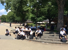 最終訪問ちは上野公園 各班最後の見学地へ  博物館 北斎、写楽、広重等が展示されています。  間も無く集合します。  全員集合、東京駅へ向かいます。  |