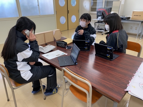 橋北地区内の興味ある事業所を探して、本日も職場体験を受け入れていただけるかどうかお願いの電話営業に奮闘!電話をかける横で、すぐフォローできるようにスタンバイもできるようになりました。クラスみんなで活動!