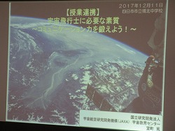 月曜日の6限目にJAXAの方にお越しいただき、3年生に向けて出前授業をしていただきました。JAXAとは何かや、宇宙についての話、宇宙飛行士に必要な資質などを学びました。国際宇宙ステーション内で活動するためには高度なコミュニケーション力が必要なことを、パズルと通して学びました。