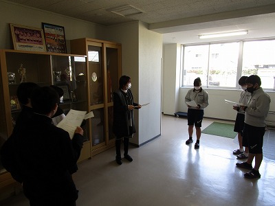 本日のお昼休みに、各クラスの美化委員が職員室前で、24日(水)の大掃除に向けての打ち合わせを行っていました。