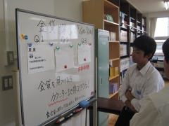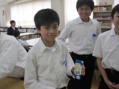 今日は昨日より多くの生徒が問題に挑戦しました。景品の橋北中オリジナルのしおりを貰って嬉しそうにしている姿が見られました。