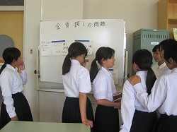23日から25日までの3日間、図書委員会の活動として「金貨探し」をしました。図書委員の考えたヒントをもとに本を探し、その中から金貨のしおりを発見します。見つけた人には本人のバーコード入りのしおりをプレゼントします。一人で何冊も金貨を見つけた人がいました。