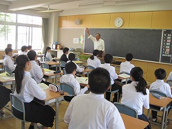 中学生のパワーに先輩は感激、卒業生の画家山内大介さんが特別授業、四日市の橋北中学
