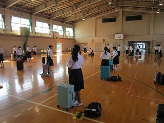 本日3年生は10/4(日)から出発する2泊3日の修学旅行(広島・淡路方面)に向けて、「修学旅行のしおり」を1ページずつ全員で確認しながら、最後の準備をしていました。もちろん、持ち物点検にも余念がありません。