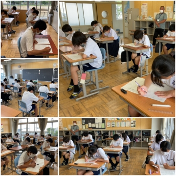 中間テスト2日目です。粛々とペンを走らせる生徒の皆さん。