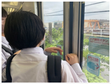JRから見える橋北中に手を振り、