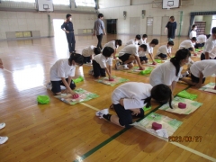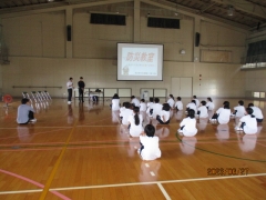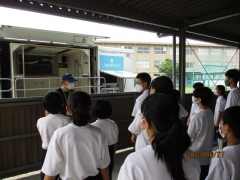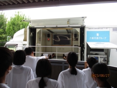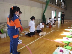 6月27日(火)の午後、2時間を使って四日市中消防署の方やサルビア分団の方に指導していただき、災害に合った時の心得を聴いたり、起震車に乗って地震の揺れを実際に体感したり、胸骨圧迫やAED操作の練習をしたりしました。全員が、真剣に取り組んでいました。