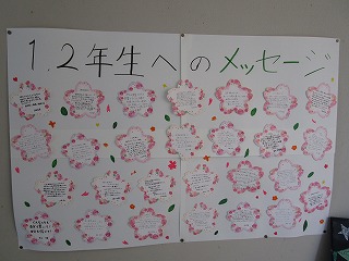 1階生徒昇降口付近に3年生から1,2年生へのメッセージが掲示されていました。