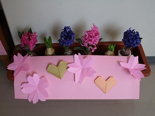 それにこたえるかのように、園芸創作部コーナーではお祝いメッセージが飾られていました。
