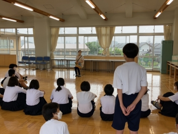 橋北中の生徒が耳傾ける 橋北交流会館で学び舎音楽会