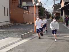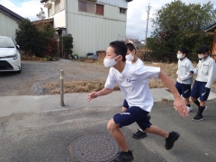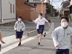 新年初の部活動を行っています。最初は、近くの神社までランニングに行きました。