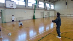 最初は慣れない様子でしたが、時間がたつにつれて、笑顔でボールに向かう様子が見られました。