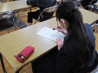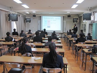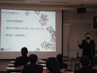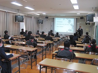 今日は,後期選抜の合格発表の日でした。そのタイミングで2年生では,あと1年にせまっているなか,校長先生に今後の生活に向けて1時間授業をしてもらいました。