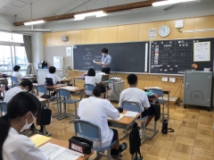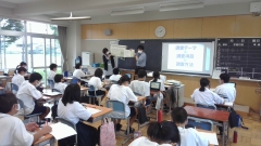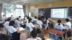 今日は、1・2年の社会の授業にゲストティーチャーとして