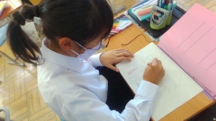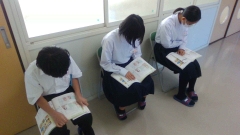 スピーキングテストと並行して、1年生も先輩に負けじと、四日市市×ロングビーチ市のロゴマーク製作に取り組みました。