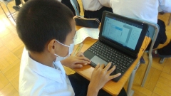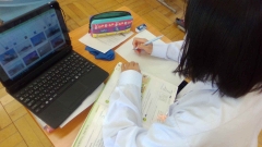 夏休みに課題として、教科書の音読練習に取り組んだ1年生。その成果を発揮すべく、カメラに向かって一生懸命発音していましたね。待機時間には、少しでも英語らしい発音にしようと、必死に練習する様子もありました。練習の成果は十分発揮できたでしょうか。
