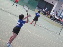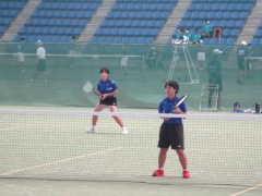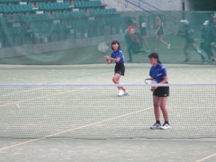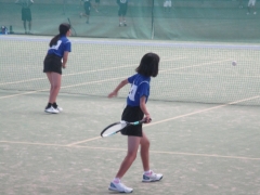 準決勝の試合は、前衛・後衛ともに試合を重ねるごと動きがよくなってきており、後衛がサイドにふられたボールを拾いきり、前衛がつめてボレーでポイントをとるなど、雁行陣の持ち味が出し切れた試合でした。
