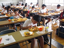 本日、橋北小学校6年生を迎えて、中学校一日体験活動を実施しました。6年生児童は、オリエンテーションに始まり、数学、体育、国語、音楽の授業を体験し、部活動を見学しました。また、昼食はデリバリー給食を試食しました。体験活動を終えて、すごく楽しかったと感じている児童がたくさんいました。また、デリバリー給食も好評でした。中学校生活への不安が少しは解消されたようです。