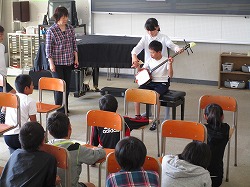 橋北中の生徒が耳傾ける 橋北交流会館で学び舎音楽会