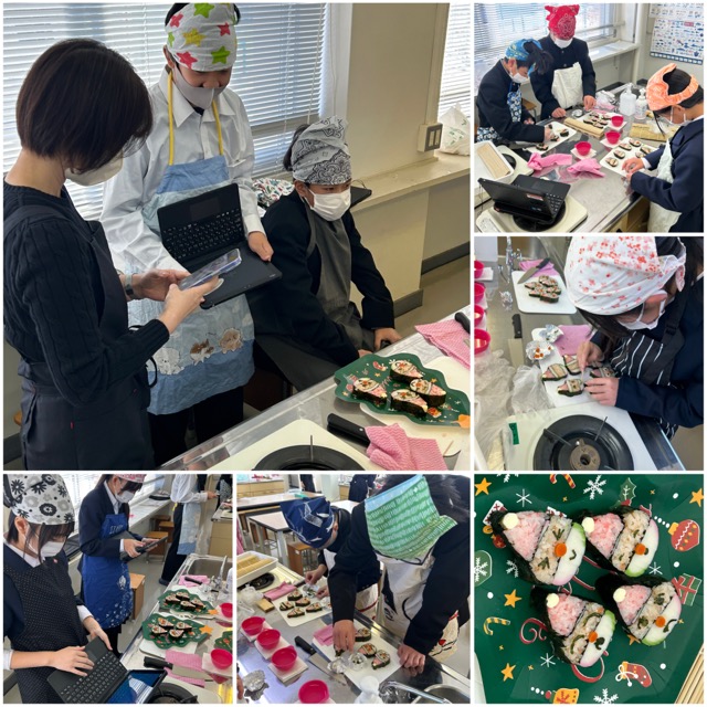 今年も花村さんを招いて家庭科の授業の一環として飾り巻き寿司づくりをお願いしました。