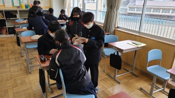 誠実、正直、さわやか、陽気、ユーモア、活発、てきぱき、意志が強い、しっかりしている、力強い等。自分が持っている自分のイメージと違っていた人も、自分には何もないと思っていた人も班の人からメッセージをもらって、とてもうれしそうにしていました。