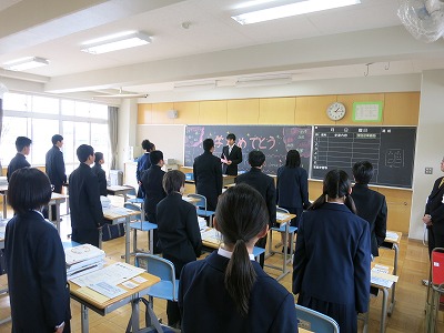 入学式の後,記念撮影をしてから学級開きです。担任の話を聞いた後,たくさんの教科書や配付物にびっくりしました。しっかり話を聞き,忘れ物がないように準備しましょう。中学生として当たり前のことですね。