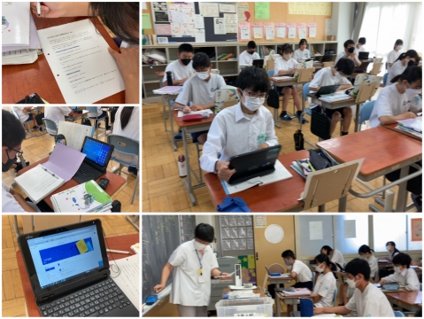 1限目、3年生の国語です。早速、スタンド台が大活躍中。