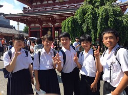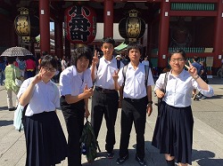 上野公園と浅草の写真です。晴れて大変暑いのですが、どの班も協力して早めに行動しているようです。